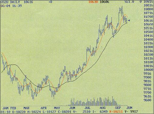 알다시피 단지 한 개나 두 개의 이동평균을 사용할 때는 시장이 상승이나 하락추세에 있는지만 알 수 있고 보합추세를 판별하기는 힘들다. 그러나 두 개 이상의 이동평균을 사용하면 보합추세를 읽을 수도 있다.