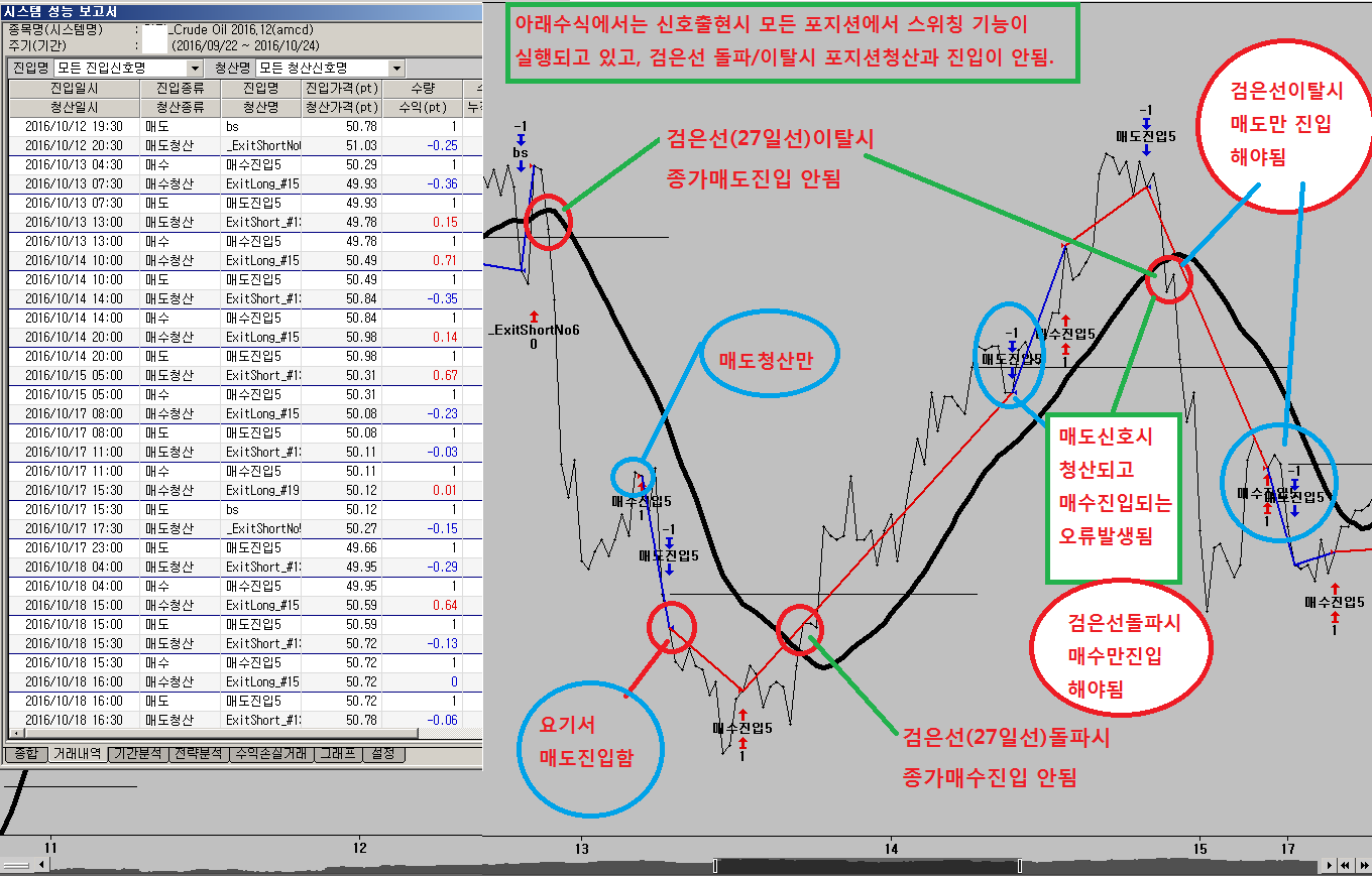 주가가 검은선(27일선) 이탈후에는 매도신호만 진입하고 매수신호출현일때는 청산만