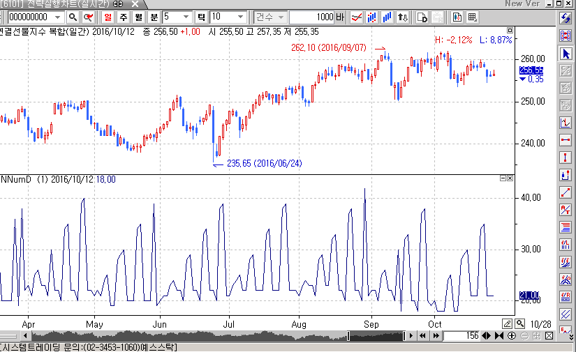 > 선물 일봉 차트에서 지표를 생성하고자 합니다.