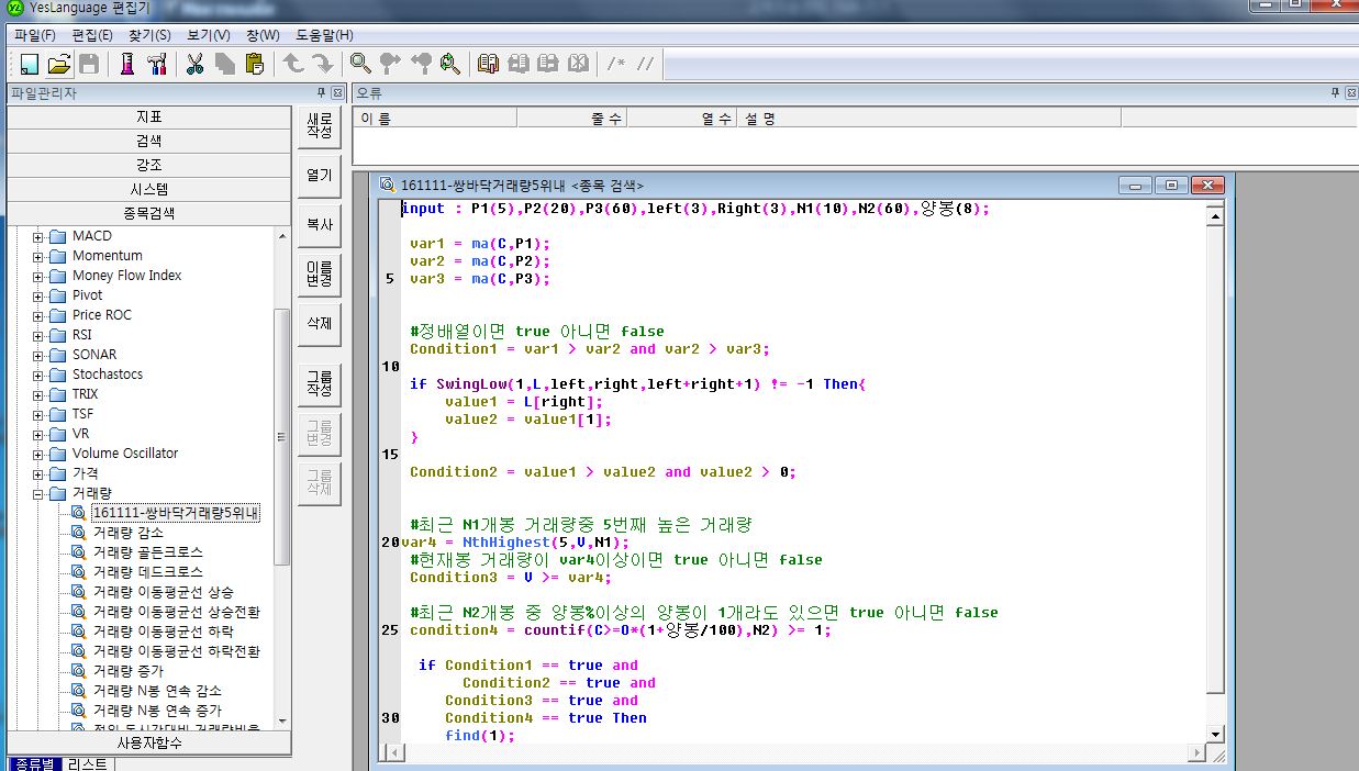 첨부파일1과 같은 종목 검색식으로 첨부파일2의 창에서 검색을 해보니 검색이 되지 않네요