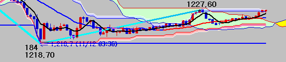 사진처럼 적용되어 나온겁니다. 제가 궁금한것은 중간에 추세선으로 되어 형광색으로 저점과 고점을 연결해 주는 색상이 저점으로 내려갈 땐 파랑색으로 표시되고 저점에서 고점으로 올라 갈땐 빨간색으로 표시할 수 있는지.. 그리고 변폭이 저점에서 고점으로 한번에 가는데 혹시
