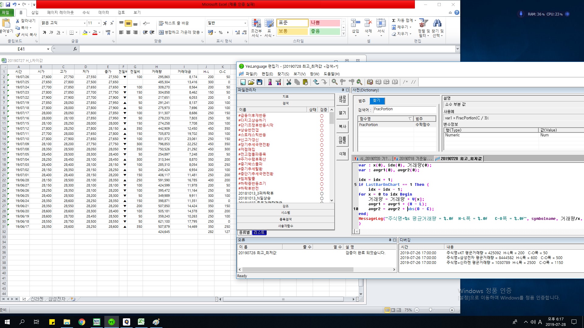 ---- HTS에서 받은 ------ ------- 예스트레이더 -------