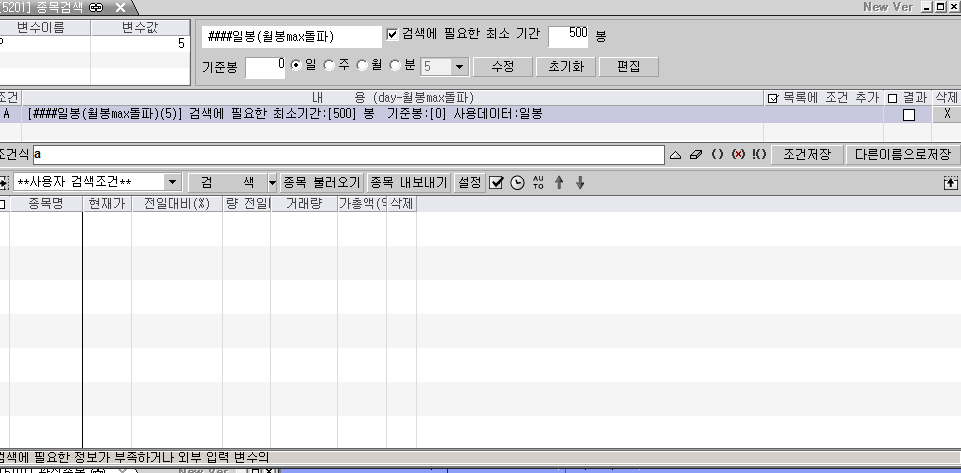 > 만들어주신 지표식은 잘 수현되는데 검색식은 애러가 나서 문의드립니다.