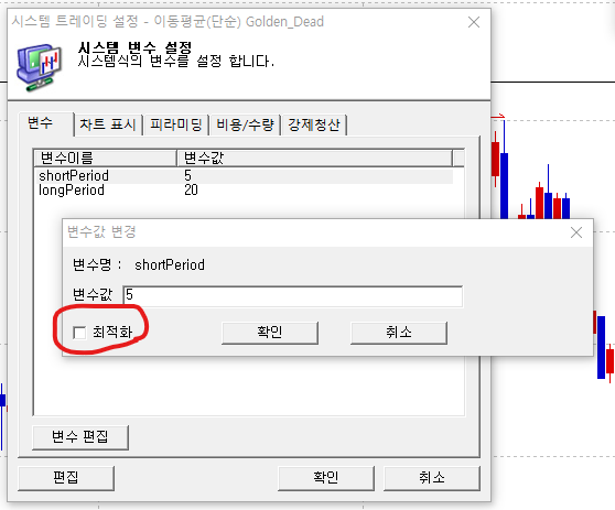 첨부하는 이미지에서 처럼,,, built-in 시스템의 시스템 변수설정창에서는 "최적화" 체크박스가 정상적으로 보이고 있습니다. 그런데,,, 제가 작성한 시스템에는 "최적화" 체크박스가 보이질 않습니다. 어떻게 해야 하나요?