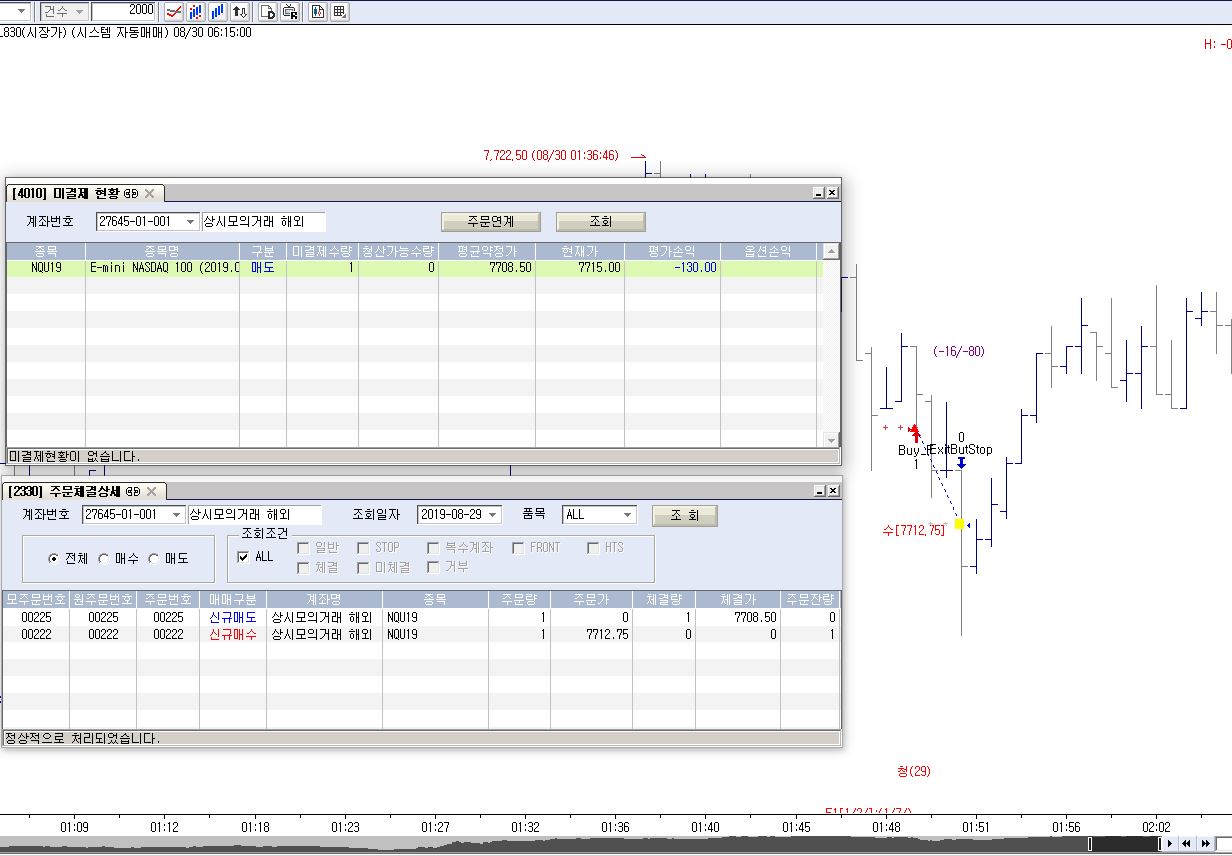 차트에 신호가 발생하면 주문까지만 발생시키고 이후 체결여부로 제어가 가능하지 않습니다.