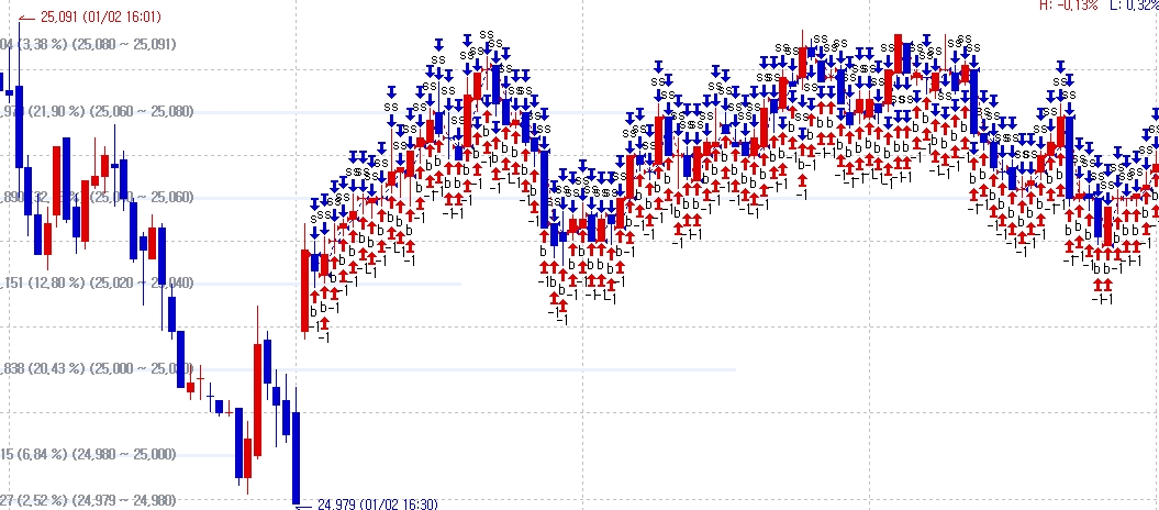 1월2일 16:30분경에 최초진입을하는데, 10일 최고, 최저가가 도출되지 않는 상태에서 진입을 하고, 계속해서 조건이 틀린데도 진입하고 추가 계약도 되는 모습입니다.