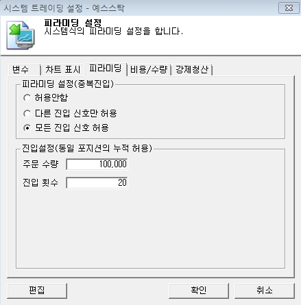 청산 못하고 평균단가가 -100틱때마다 1계약 추가(물타기)