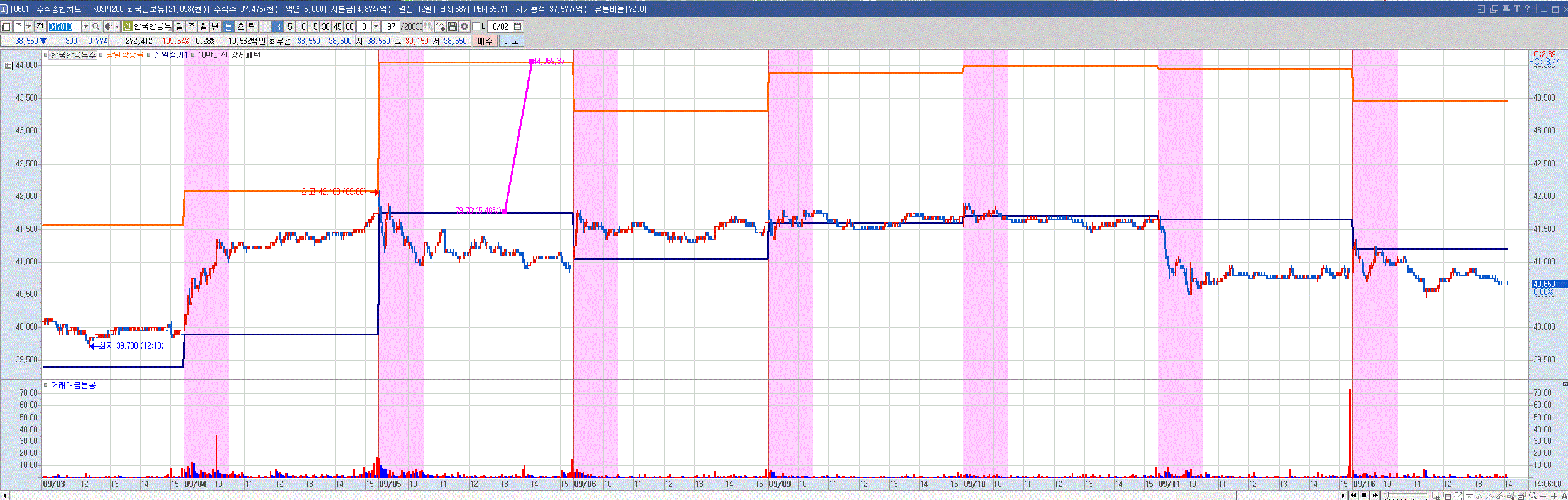 - 분봉으로 한눈에 어느 종목이 5.5%이상, 어느 시간대에 상승했는지를 파악하기 위해서입니다.