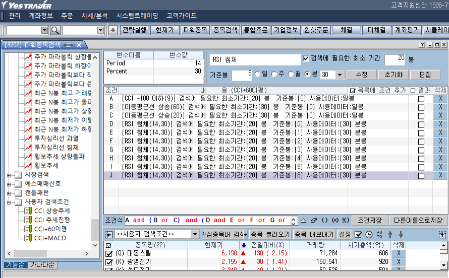 D 부터 검색식 30분봉 2일치를 넣고 싶은데 더이상 추가가 안됩니다.