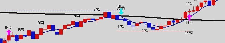 > 신호발생시 전저점 라인과 가격수치표시(적색)