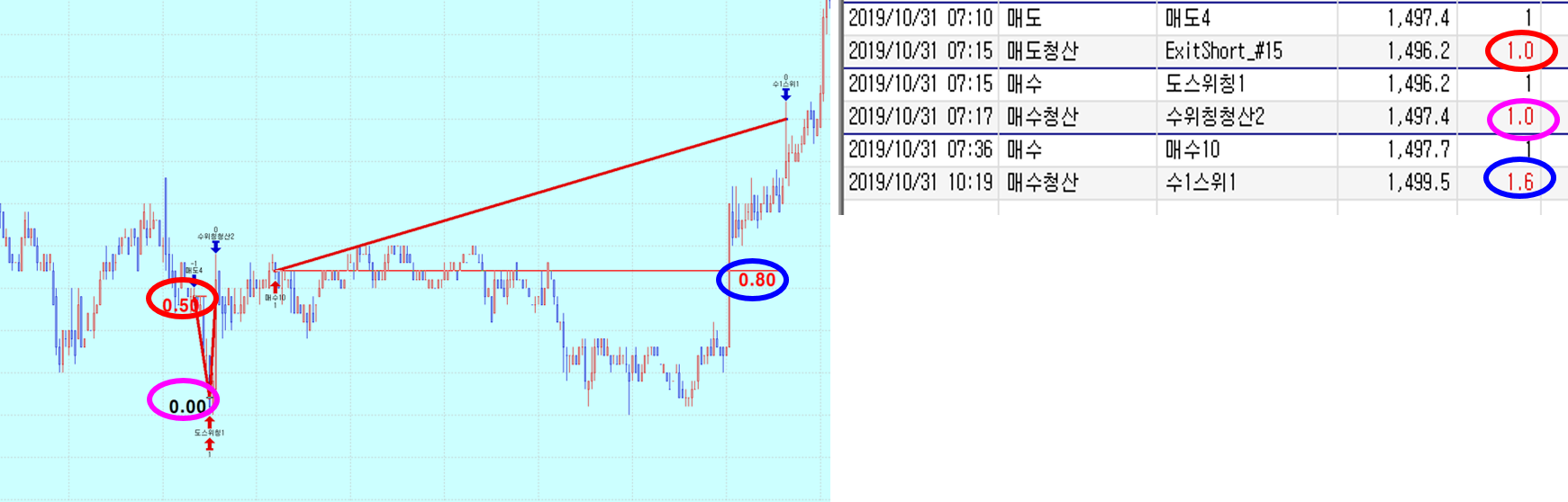 1.청산금액(수익 or 손실)이 표현 되도록 수정 좀 부탁 드립니다.