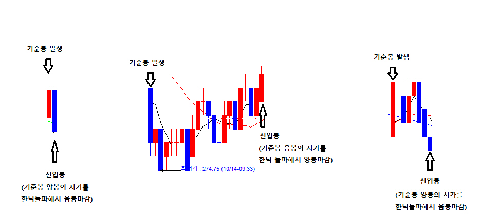 2)매도 : 양봉 몸통길이가 (외부변수)틱이 나온후, 그 양봉의 시가를 한틱 돌파해서 마감하는 음봉 출현시 진입.