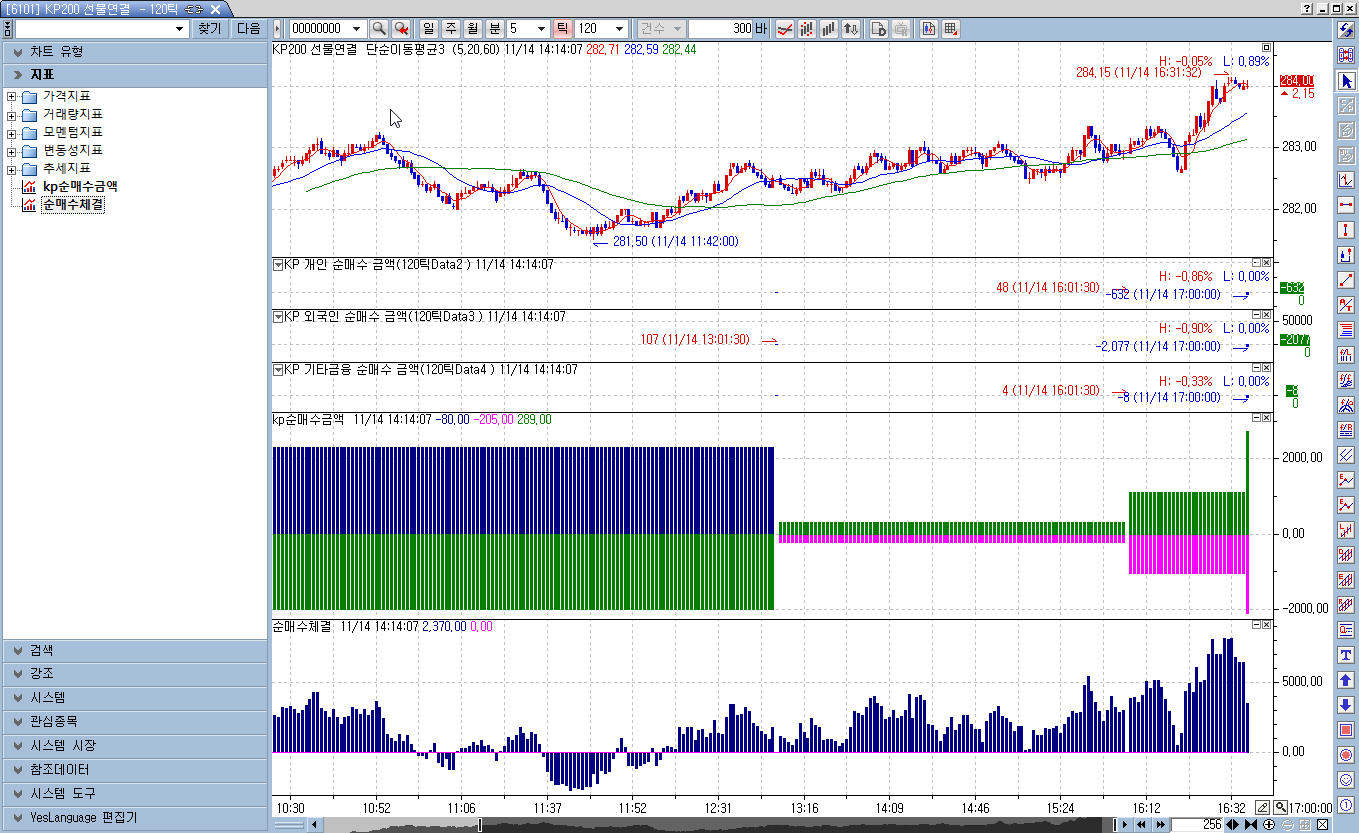 참조데이타로 KP개인순매수금액, KP외인순매수금액,KP기타 순매수금액을 추가후