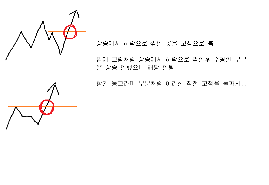 고점은 상승하다가 하락한 곳. 저점은 하락하다가 상승한곳.