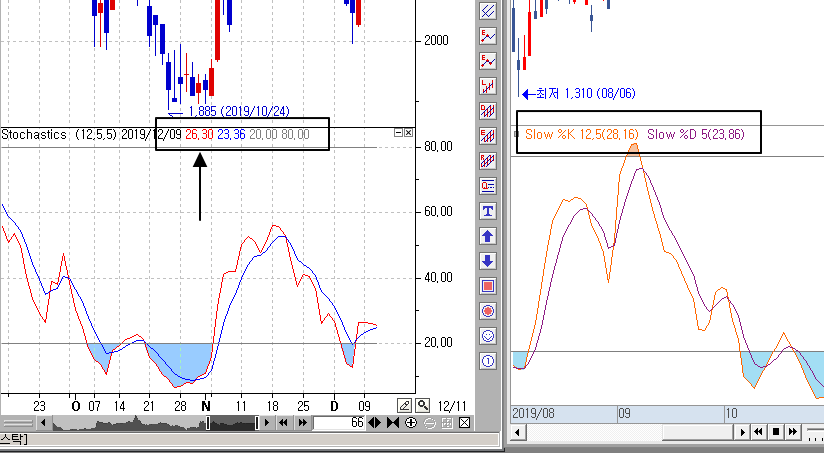 키움은 스토케스틱 계산방법이 다른것으로 알고 있습니다.'