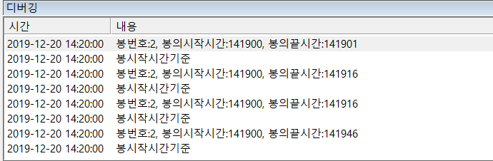봉시작시간, 봉끝시간 조건문