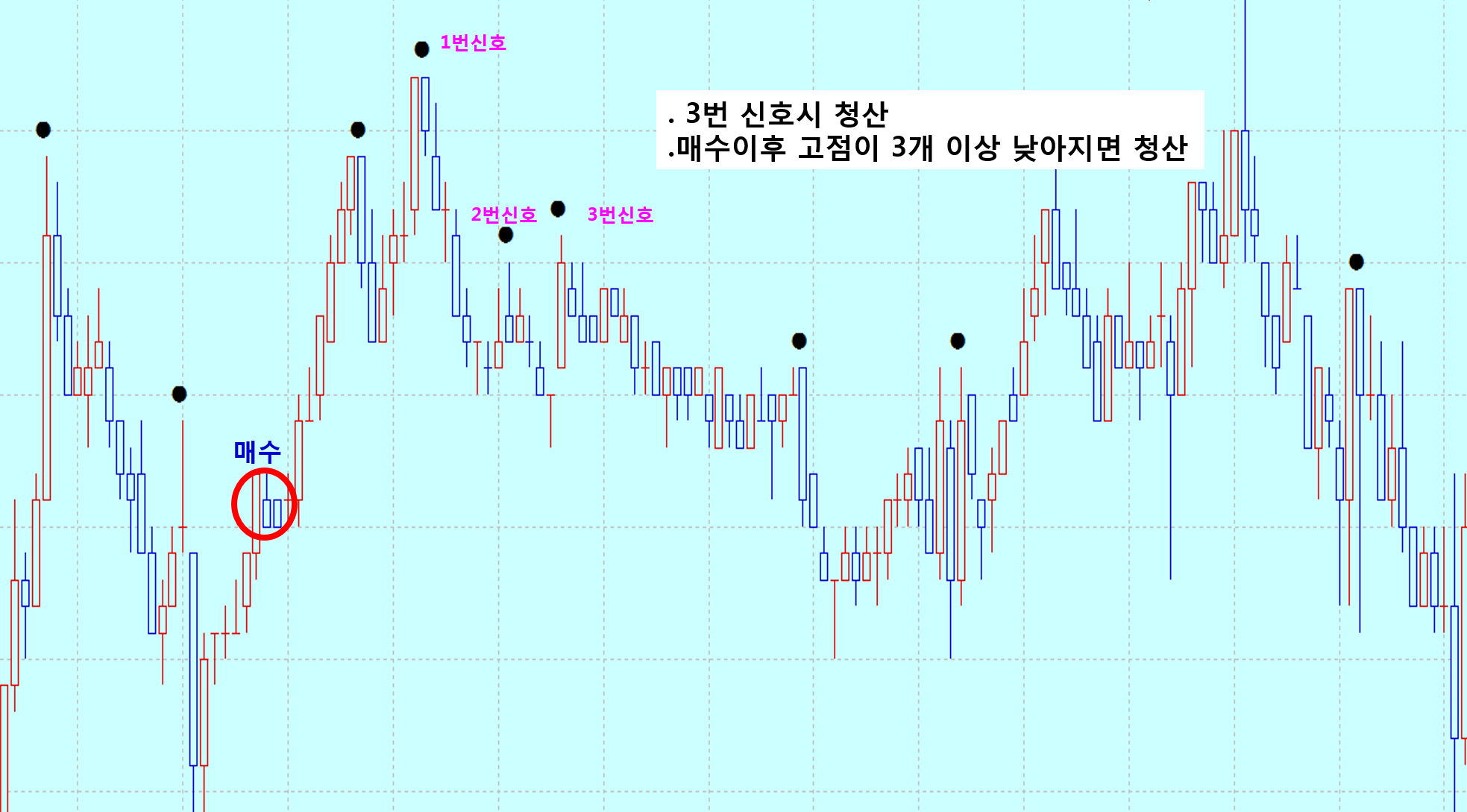 2) 매수 이후 고점이 3연속 하락 하면 청산