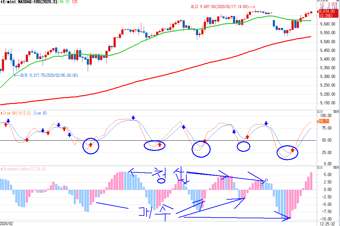 2. 스토케스틱 10 5 5가 기준선 50 이상에 있으면서