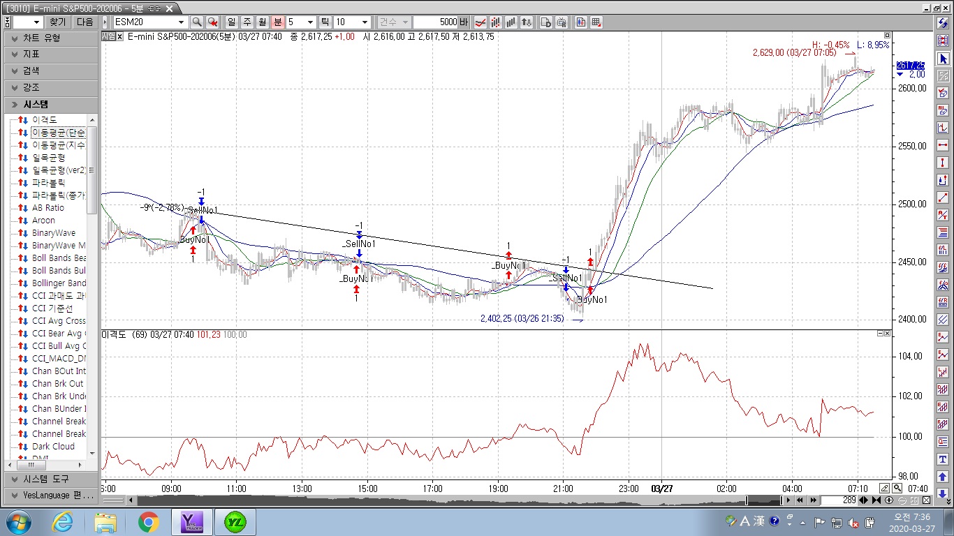 보시는 그래프는 신호가 매수 매도로 반복후 한 방향으로 수렴한 패턴입니다.