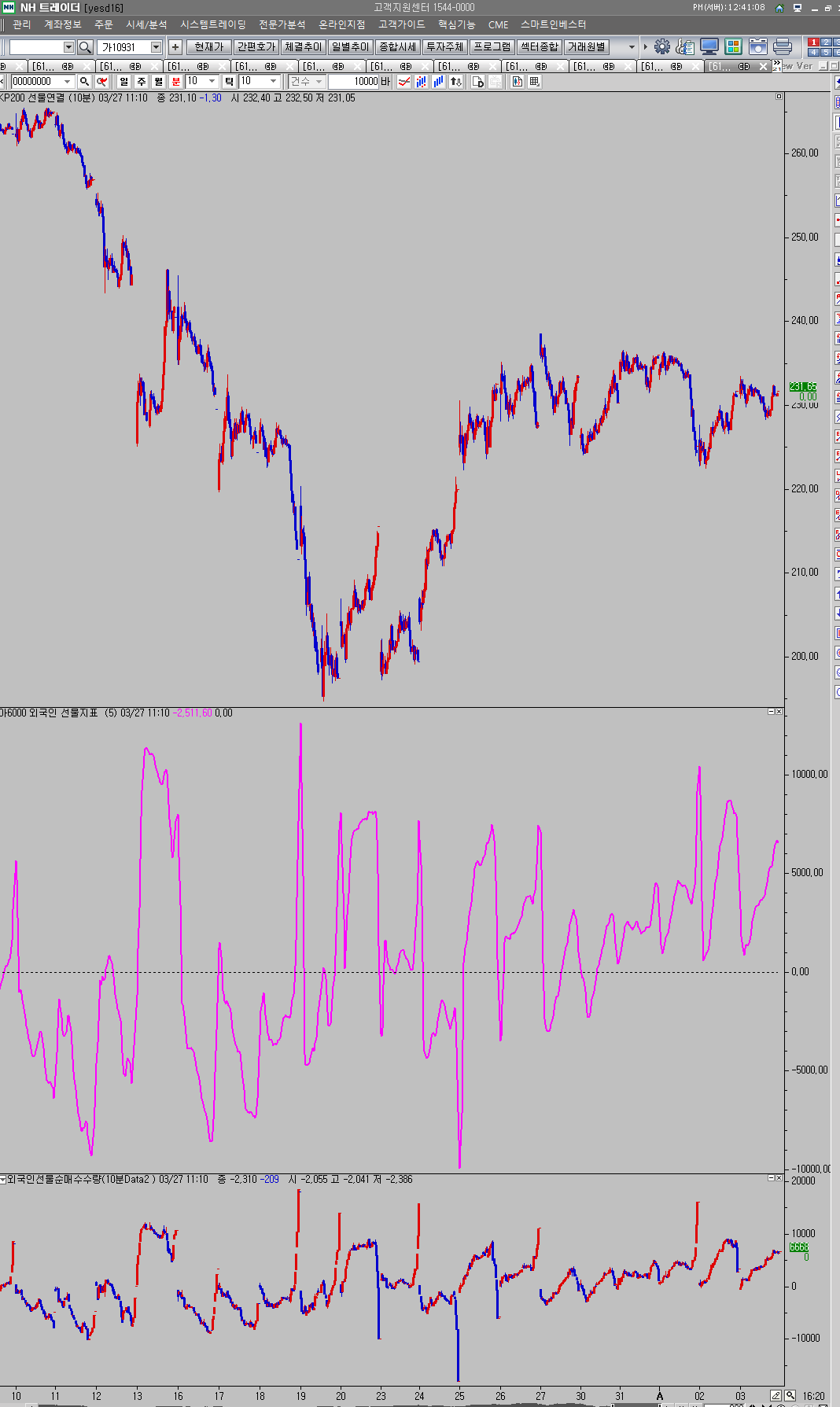 그림과 같이 data2 참조 지표에 (외국인 선물 순매수 수량)을 설정했을때
