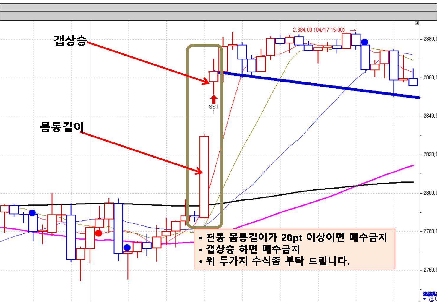 갭상승하면 봉은 매수금지이면