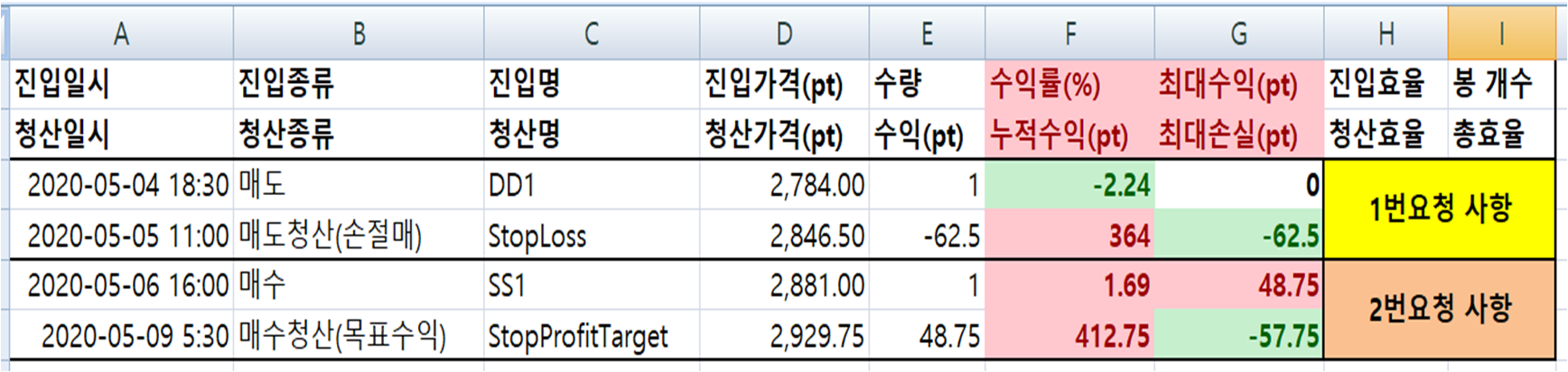 > 제목 : 청산 수식(수익,손실) 좀 요청 드립니다