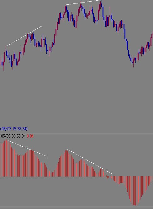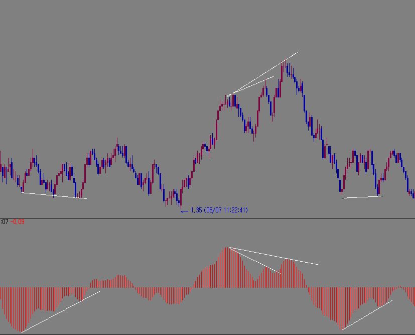 첨부된 이미지 같이 가격 캔들과 MACD 사이에 다이버전스가 발생했을 때