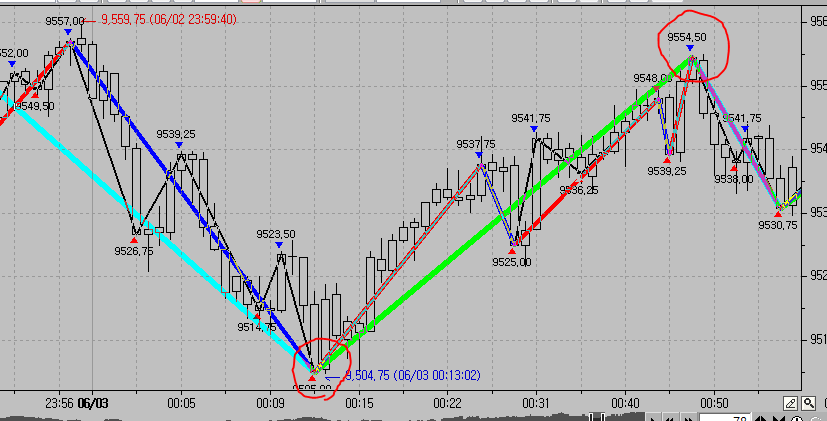 개인적으로 아래 지표와 같이 지그재그 파동선을 단기, 중기, 장기로