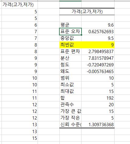 첨부한 이미지를 보면 예의 경우 최빈값은 9이므로