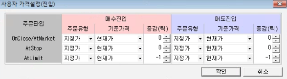 신호가 발생하고 확인한 현재가에서 지정한 틱수를 가감하여 주문이 집행됩니다.