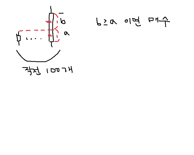 고점 돌파를 하되 돌파시 몸통의 길이가 장중 돌파시점 몸통의 길이보다 2배 이상시 익봉 시가에 매수 진입