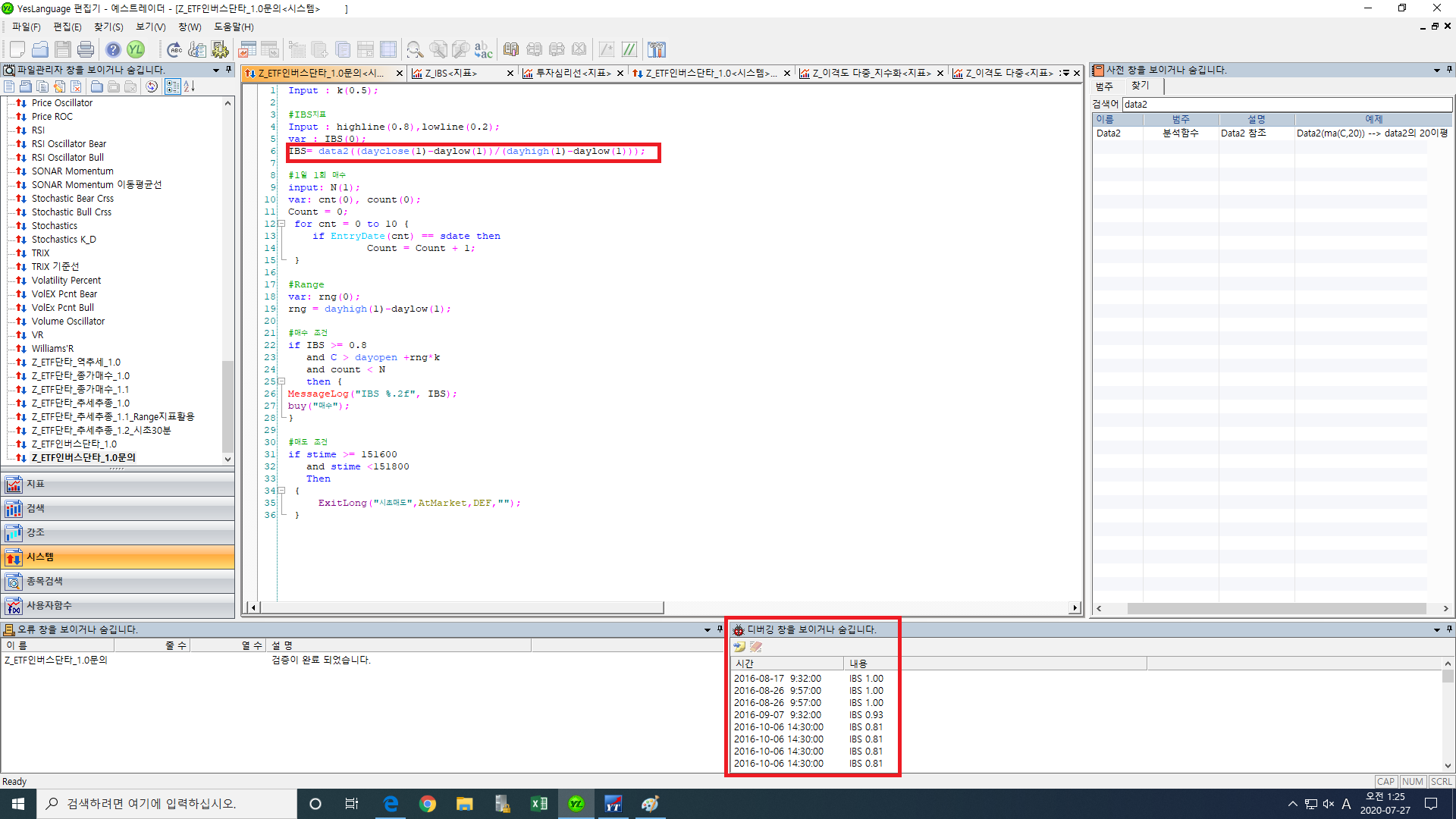 (참고로 지표는 data2의 IBS값을 표기하고 있으며 정상적으로 보여주는 것을 알 수 있습니다. 아래 수식 공유드립니다.)