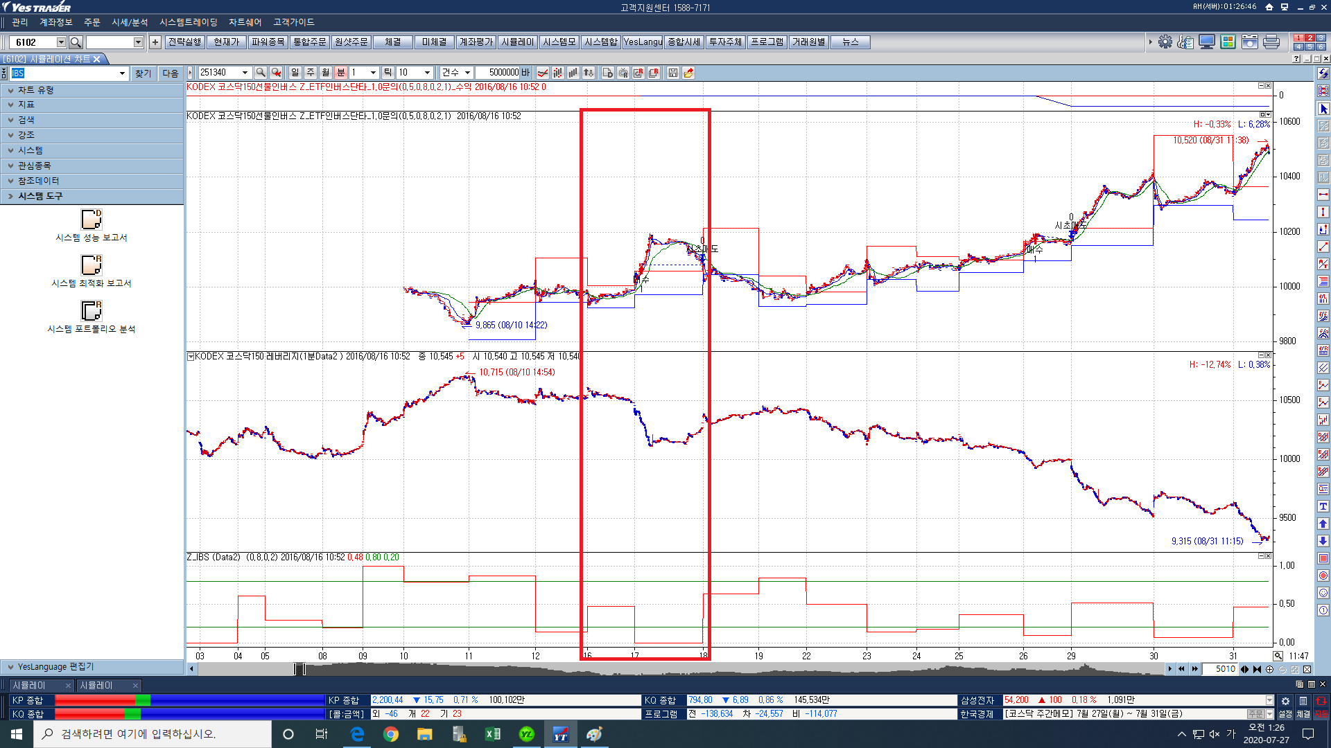 2. IBS가 0.8 이상일 경우 코스닥 150 인버스를 매수하는 로직을 작성하였으나,