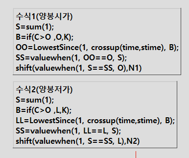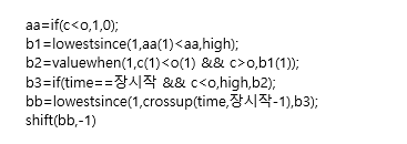 B3 = Iff(sTime == 장시작 and C < O,high,B2);