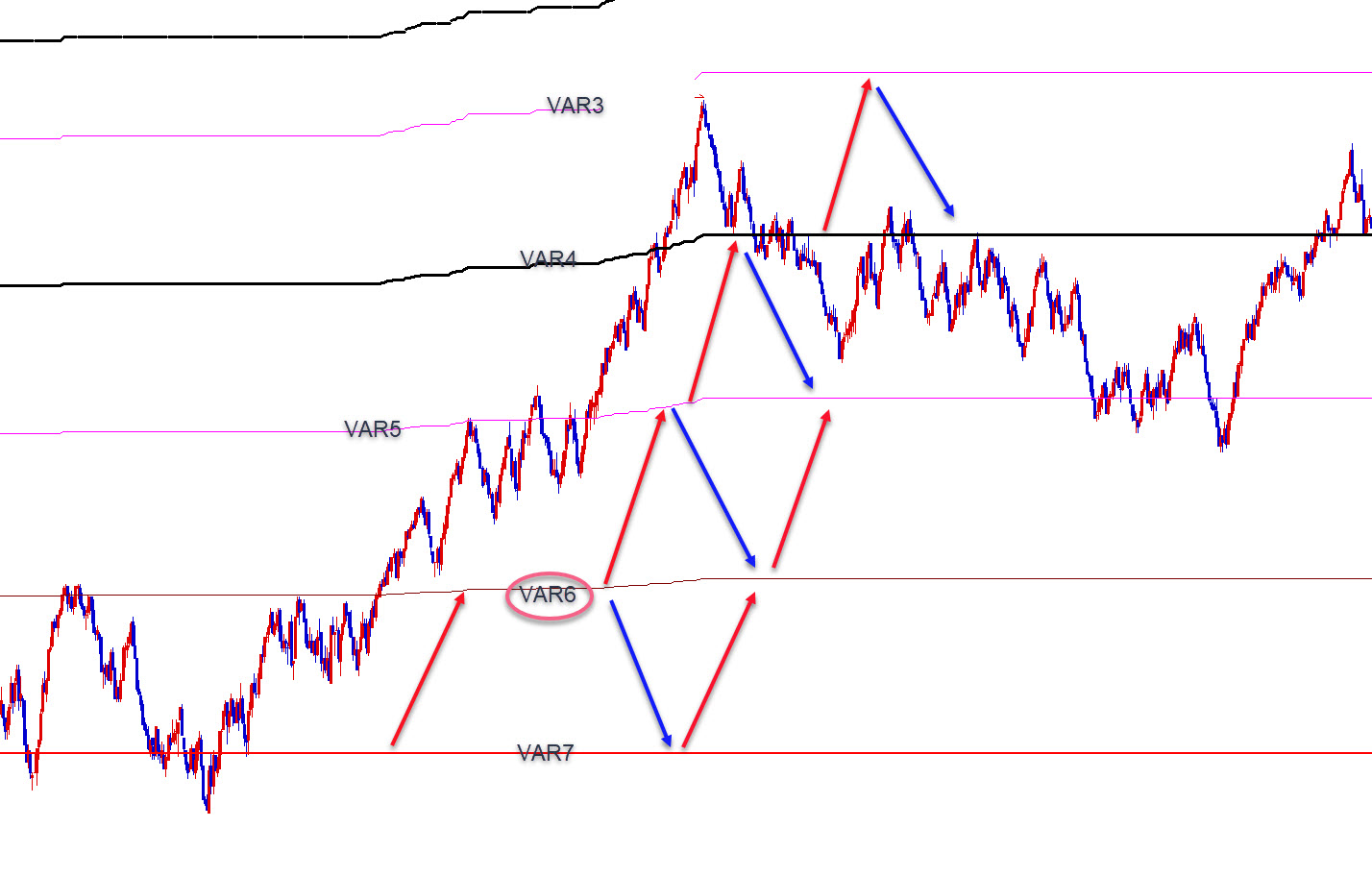 var6을 돌파하여 봉이완성되면 시장가 매수하여 다음가격인 var5에 시장가 청산하고, 다시 var5를 돌파하여 봉이 완성되면 시장가매수하여 var4가격에도달시 시장가청산 합니다(즉 var4가격도달시 시장가청산).