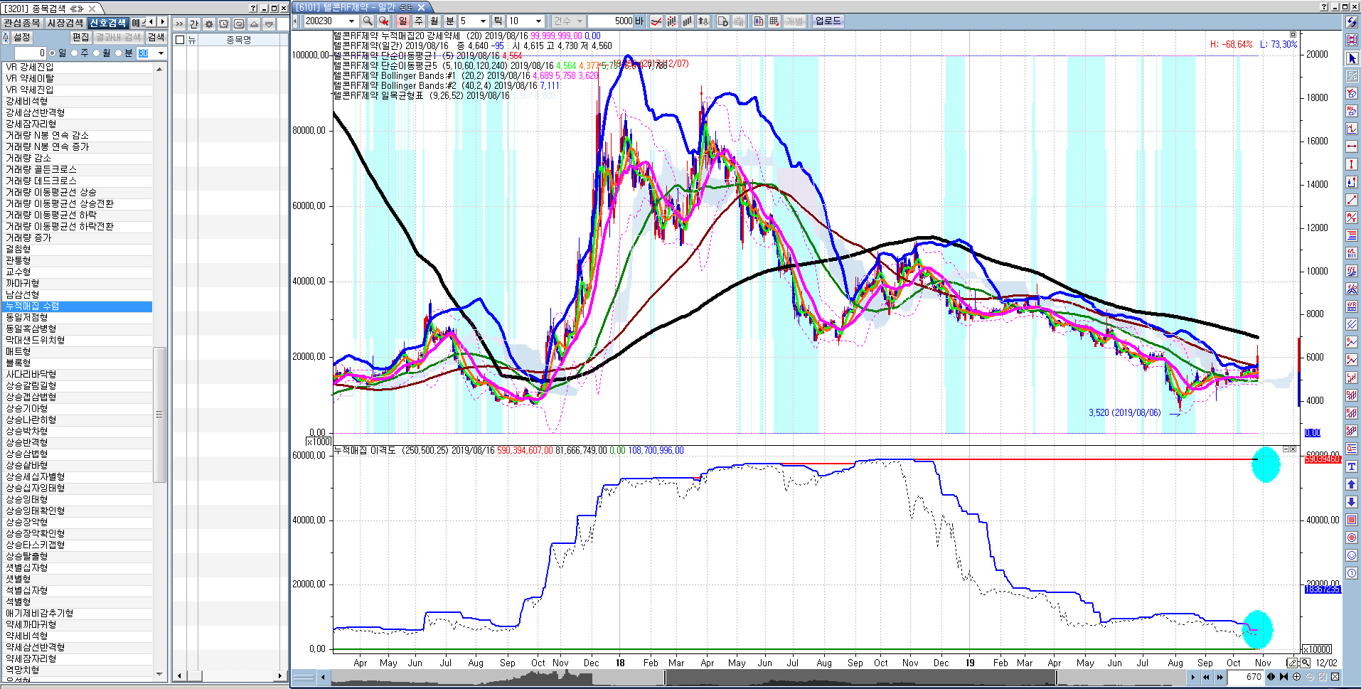 또한 기간은 좀 작게 설정해 드립니다. 최대제공 봉수인 500봉 감안하셔서 기간 지정하시기 바랍니다.