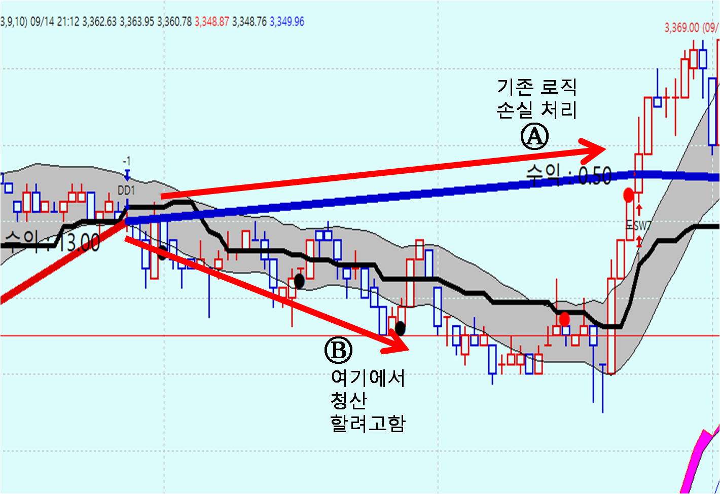 기준 : cci 수치가 3번 다운 신호 발생 하면 청산 인데 잘안되네요. <그림참조>