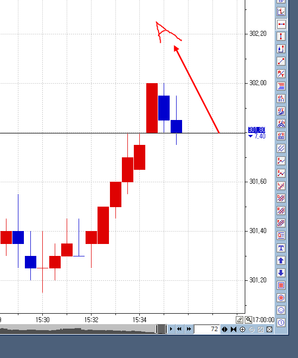 첨부된 사진의 A선 처럼 실시간으로 움직이는 종가 가격이 수평선으로 표시되도록