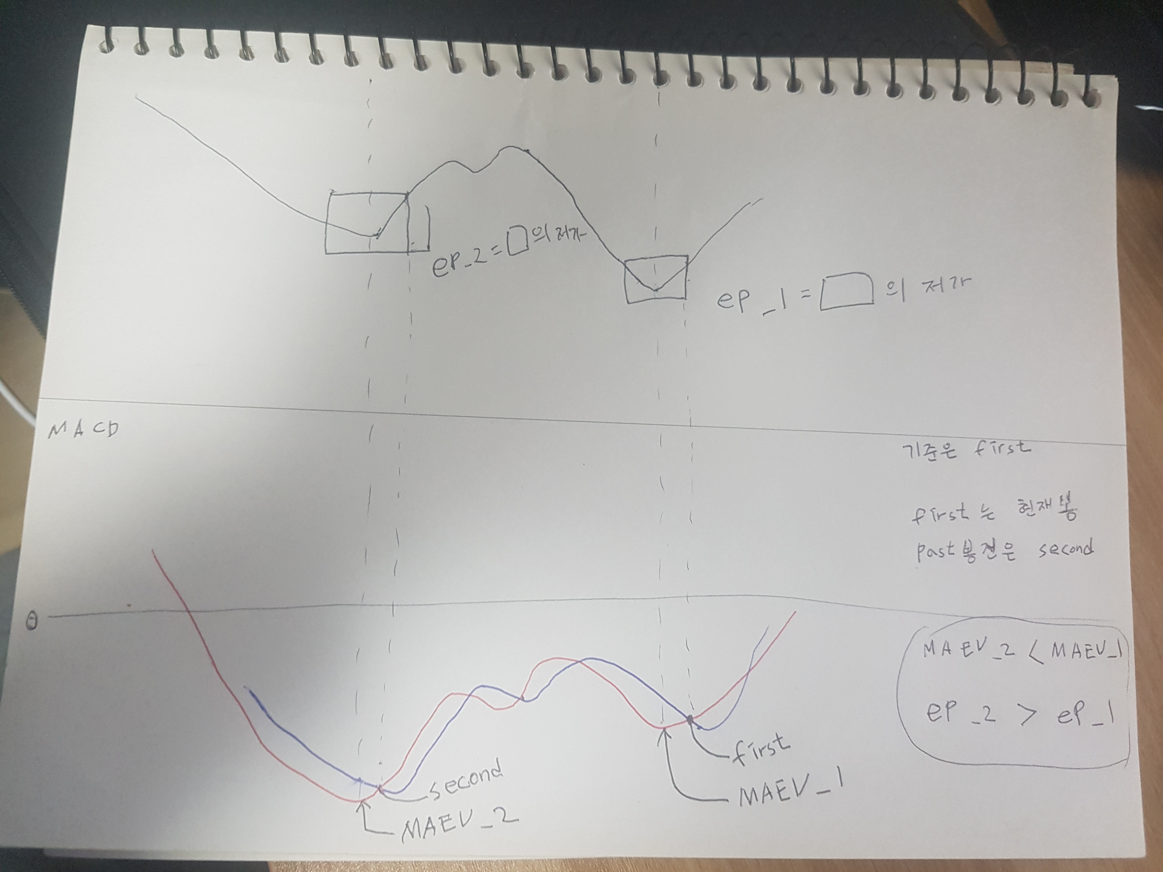 최근 데드구간 MACD의 최저가가가 직전 데드구간의 MACD의 최저가보다 크고