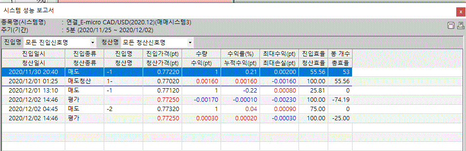 시스템 적용이후 첫신호의 종류와 관계없이 모든 신호에 대해 주문을 발생하게 됩니다.