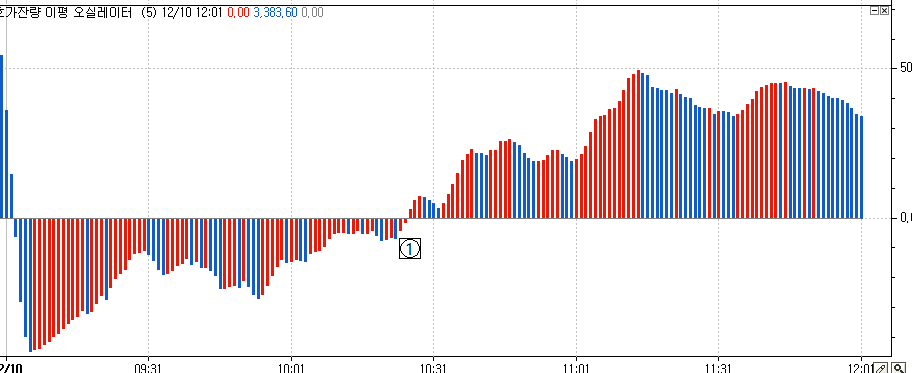 호가잔량 이평 오실레이터가 0선 아래서 위로 돌파 시 매수진입