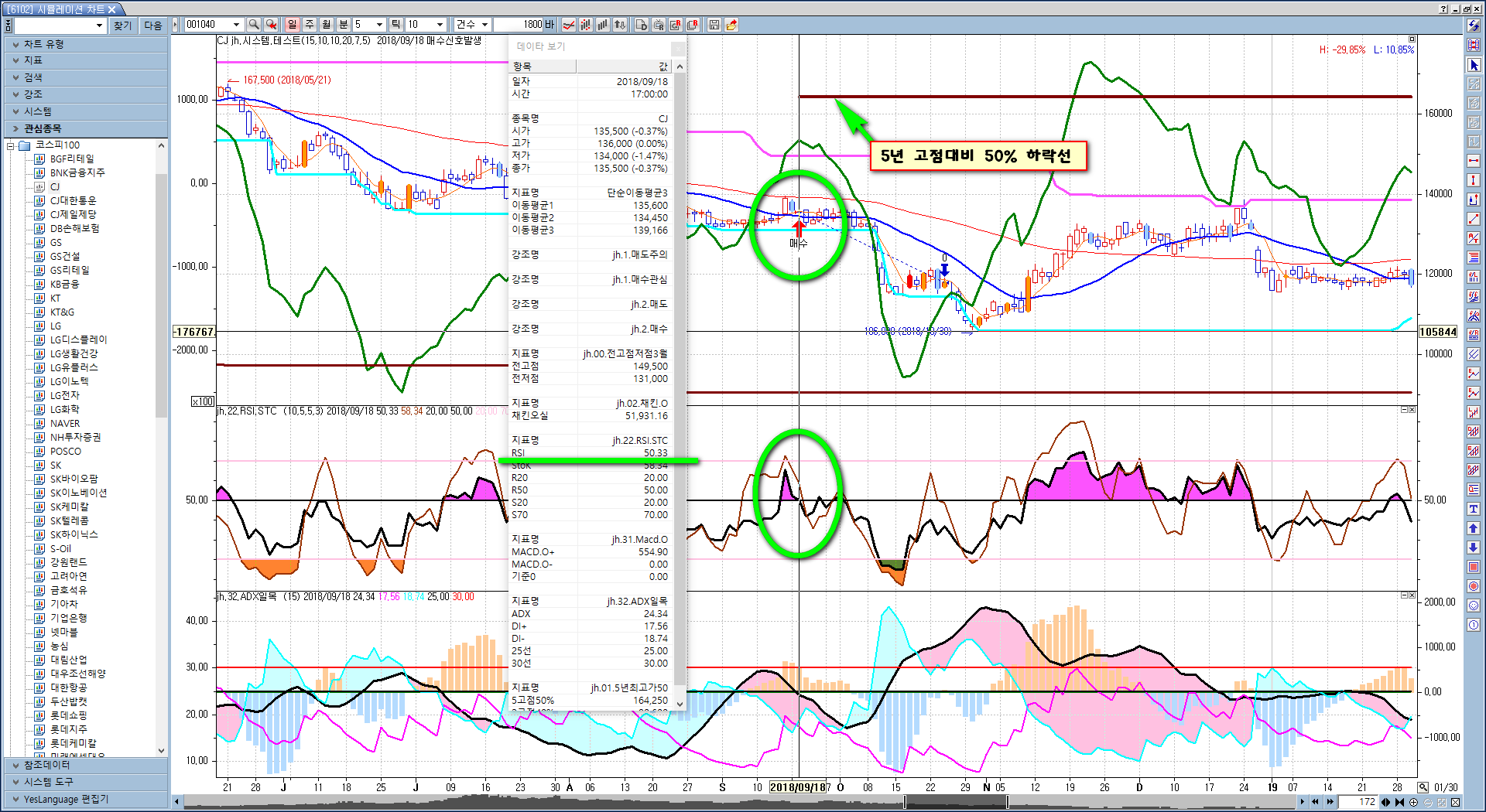 그런데 5년 최고가 대비 50% 시작하는 첫날의 RSI값을 잘못 인식하는 것인지
