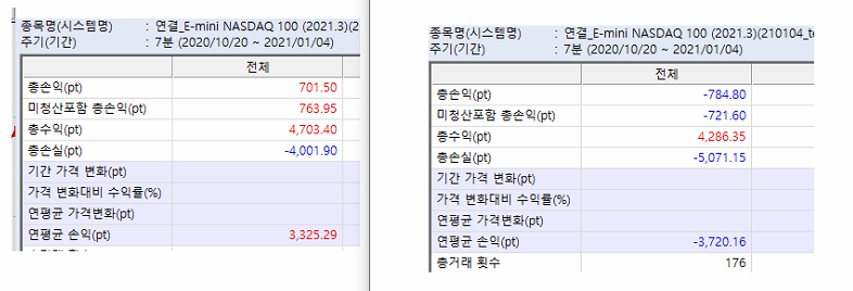 > 제목 : 전략의 결과가 다른데 확인 부탁합니다.