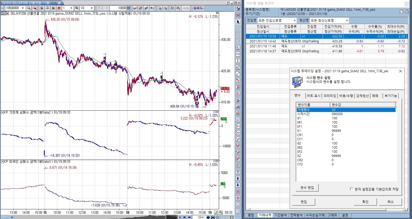 if MarketPosition == 0 and entry >= 1 and entry < 거래횟수 Then{