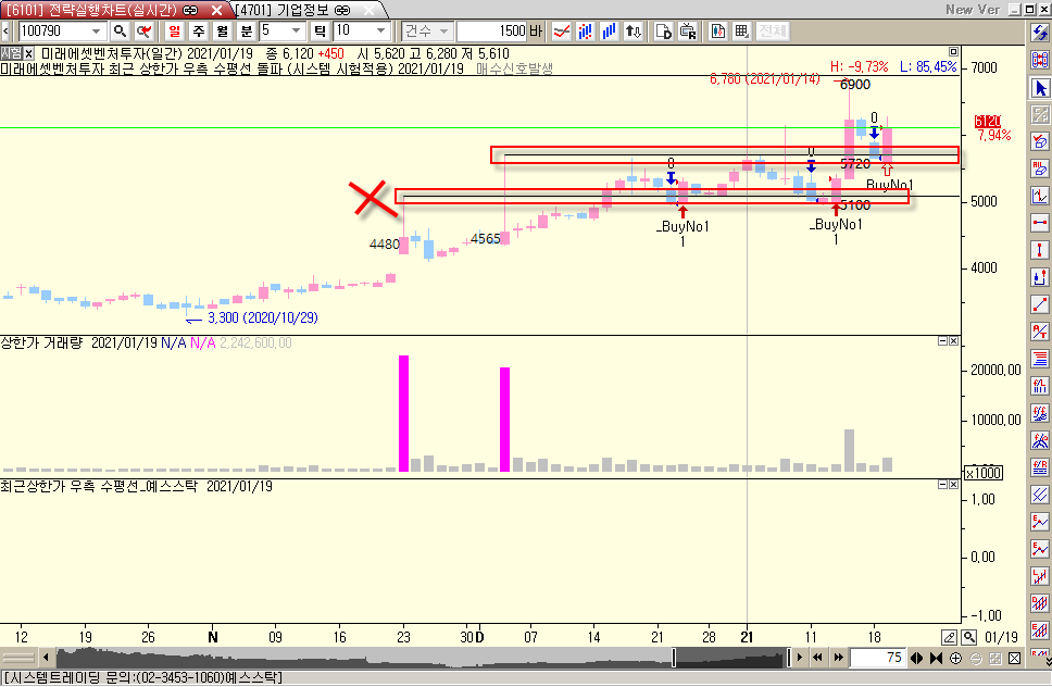 최근 발생한 상한가를 돌파하면 매수, 매도하는 시스템식인데요, 최근 상한가 이전의 봉을 돌파하면 매수가 되는데 변경 부탁합니다.