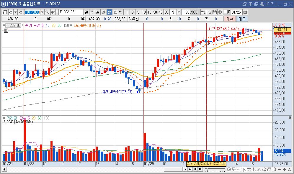 기본으로 제공하는 지표 중에 파라볼릭 적용하시면