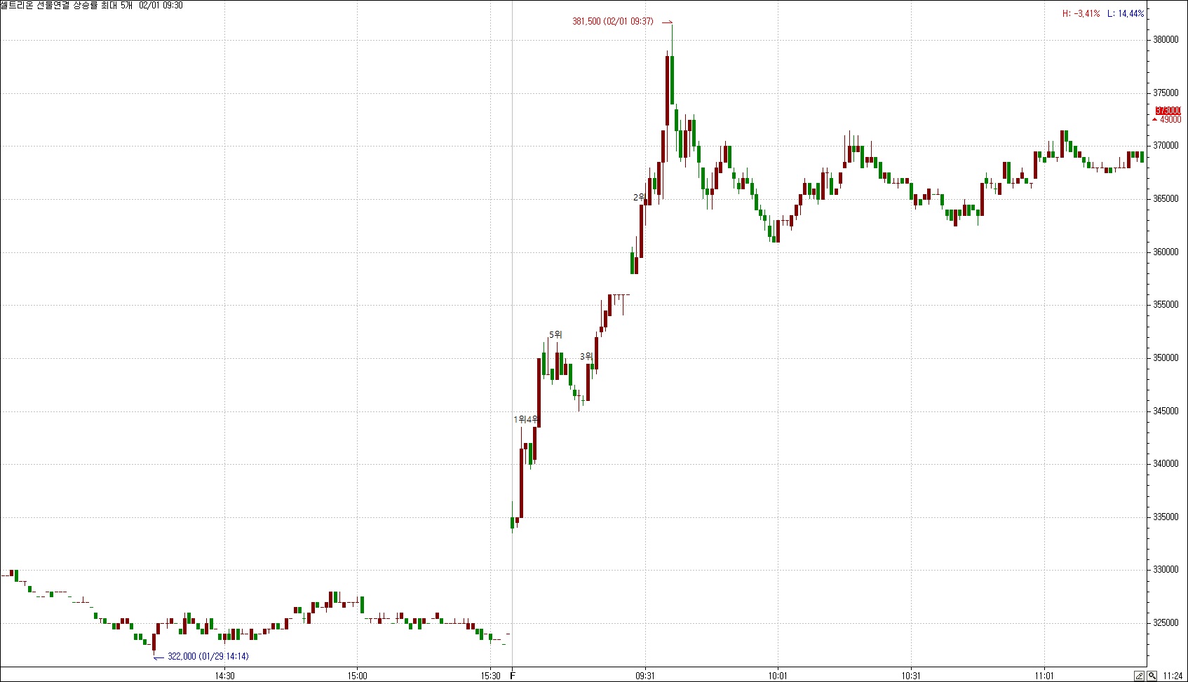 사진은 오늘 셀트리온 연결선물 차트이고 봉갯수는