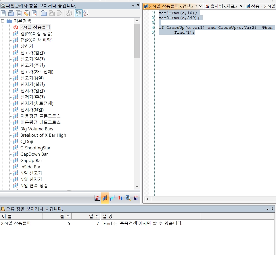 그림파일에서 에러문구( find는 종목검색만 사용가능이라고 나옵니다)