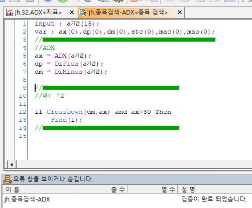 > 지표의 수식과 종목검색의 수식을 같이 하였는데요