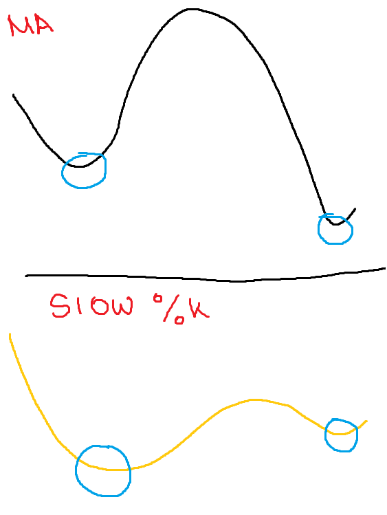 2번째 최저점 %K < 1번째 최저점 %K 를 만족할때